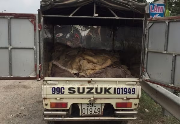 Quá trình kiểm tra, tổ công tác phát hiện bên trong thùng xe có hàng chục bao tải loại lớn, bốc mùi khó chịu. Lái xe Nguyễn Công Ngà (SN 1975) HKTT tại Bùi Xá, Ngũ Xá, Thuận Thành, Bắc Ninh lấp liếm với CSGT, đó chỉ là hàng hóa bình thường. Bị CSGT kiên quyết yêu cầu mở ra kiểm tra, lúc này lái xe mới thú nhận số hàng hóa trên là mỡ, da bì lợn.
