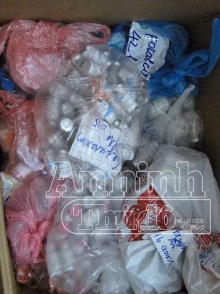 Ngoài ra lực lượng chức năng còn phát hiện nhiều vỏ hộp thuốc không lõi.