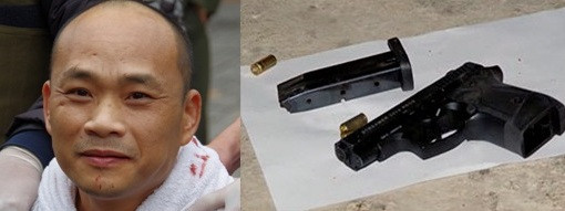 Nguyễn Hùng Cường và khẩu súng bị thu giữ