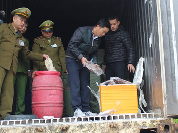 Tại thời điểm kiểm tra, trên xe có 11 tấn nội tạng động vật đóng trong các thùng nhựa và hộp xốp không có nhãn mác. Khi tổ công tác yêu cầu kiểm tra giấy tờ liên quan hàng hóa, lái xe không xuất trình được.