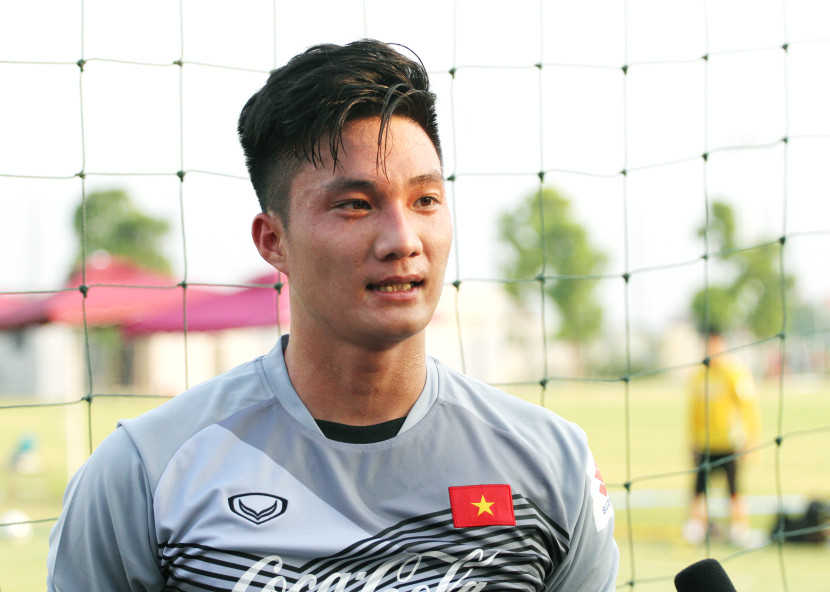 Thủ môn Văn Hoàng dí dỏm song cũng rất khiêm tốn khi nói về cơ hội cạnh tranh suất dự ASIAD với đồng nghiệp Văn Lâm và Tiến Dũng