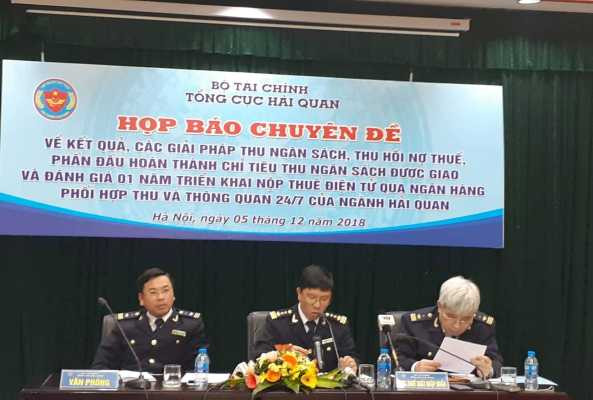 Thông tin tại cuộc họp báo sáng nay 5-12, ông Lê Mạnh Hùng, Phó Cục trưởng Cục Xuất nhập khẩu, Tổng cục Hải quan cho biết, năm 2018 Tổng cục Hải quan được Quốc hội, Chính phủ và Bộ Tài chính giao dự toán thu ngân sách nhà nước là 283.000 tỷ đồng.