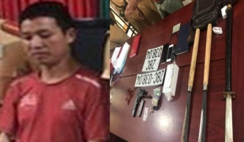 Quá trình lập biên bản để tạm giữ phương tiện, tổ CSGT phát hiện trên xe có 2 con dao quắm, 1 thanh đao tự chế; trong cốp xe có 1 chiếc túi đựng 1 khẩu súng ngắn, 10 viên đạn, 2 biển kiểm soát, 16 viên thuốc con nhộng màu vàng xanh và 1 túi nilon đựng tinh thể màu trắng, 1 coóng thủy tinh chuyên sử dụng dụng ma túy.
