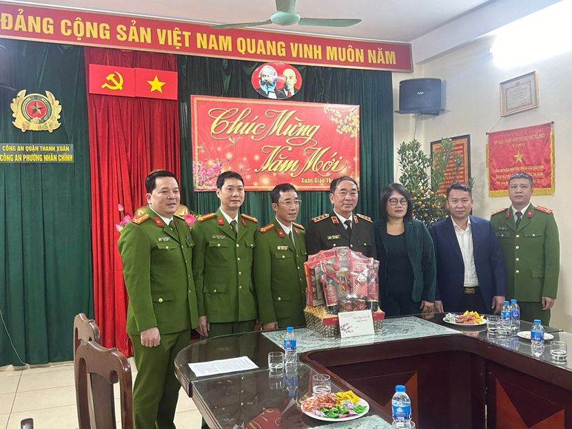 Tiếp đoàn có Thượng tá Đinh Tuấn Thành, Bí thư Đảng ủy, Trưởng Công an quận; các đồng chí trong Ban Chỉ huy Công an quận, đồng chí Bí thư Đảng uỷ phường Nhân Chính; Ban Chỉ huy và CBCS Công an phường cùng các đội nghiệp vụ của Công an quận…