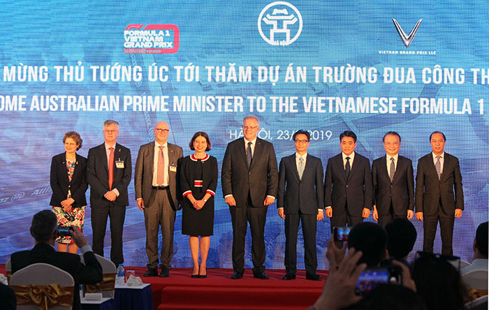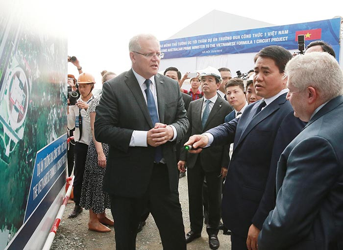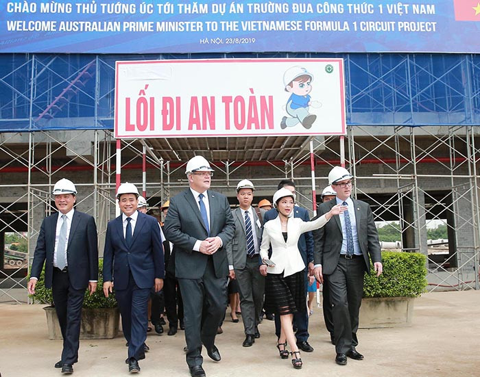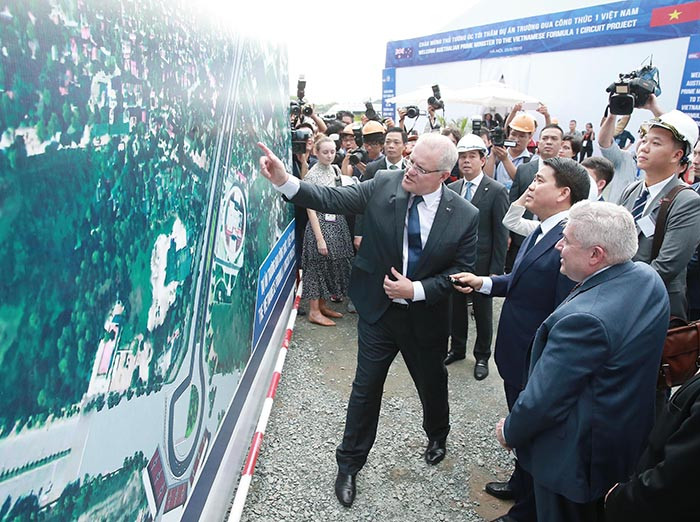 Thủ tướng Australia Scott Morrison cùng các đại biểu tham quan dự án Trường đua công thức 1 Việt Nam