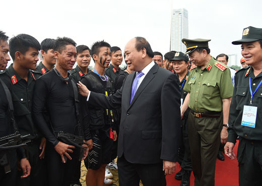 Biểu dương nỗ lực của các lực lượng công an, quân đội, cấp ủy, chính quyền các địa phương đã tổ chức thành công các sự kiện hội nghị bộ trưởng, hội nghị SOM an toàn, thành công, Thủ tướng nêu rõ: “Đặc biệt, ngày hôm nay lực lượng công an đã chủ trì phối hợp với quân đội tổ chức tốt buổi ra quân bảo đảm các phương án bảo vệ an toàn tuyệt đối Tuần lễ Cấp cao APEC với quyết tâm cao”.