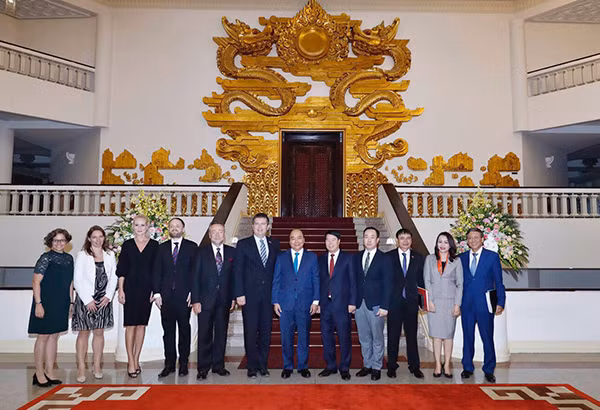 Thủ tướng Nguyễn Xuân Phúc (chính giữa), Phó Thủ tướng, Bộ trưởng Nội vụ CH Séc Jan Hamacek (thứ 6 từ bên trái sang) và đại diện Tập đoàn FLC trong sự kiện