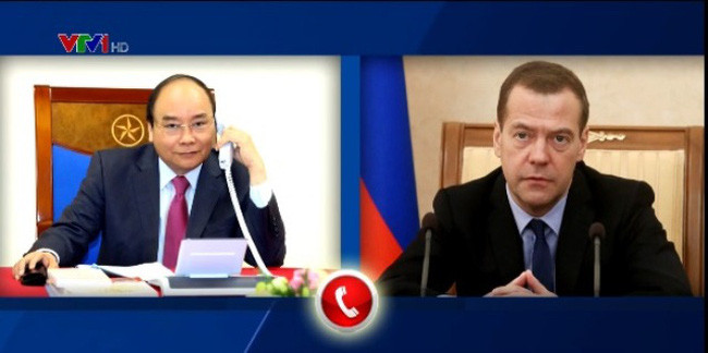 Thủ tướng Nguyễn Xuân Phúc điện đàm với Thủ tướng Nga Dmitry Medvedev. Ảnh: Vtv.vn