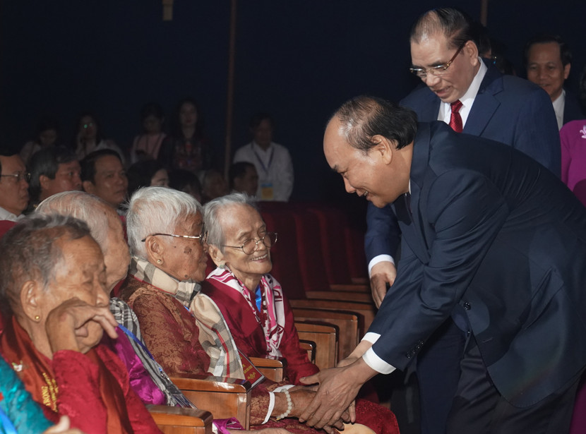 Thủ tướng Chính phủ Nguyễn Xuân Phúc thăm hỏi các mẹ Việt Nam anh hùng tại buổi gặp mặt