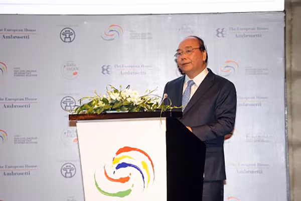 Thủ tướng Nguyễn Xuân Phúc phát biểu tại phiên khai mạc “Đối thoại cấp cao về quan hệ kinh tế Italy - ASEAN lần thứ ba”