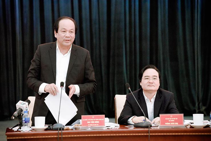 Bộ trưởng, Chủ nhiệm Văn phòng Chính phủ Mai Tiến Dũng cùng Tổ công tác của Thủ tướng Chính phủ làm việc với Bộ GD-ĐT ngày 28/3
