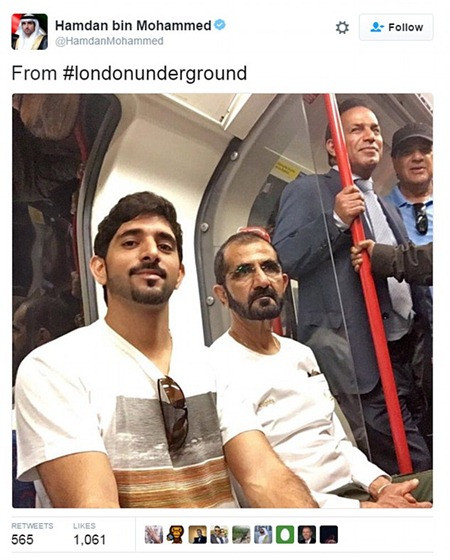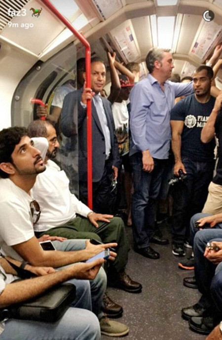Mặc trang phục đời thường, chen chúc trên tàu điện ngầm, chịu cái nóng nực giữa trung tâm London nhưng Thái tử Dubai vẫn không quên chụp một vài bức ảnh tự sướng để đăng tải lên mạng xã hội.