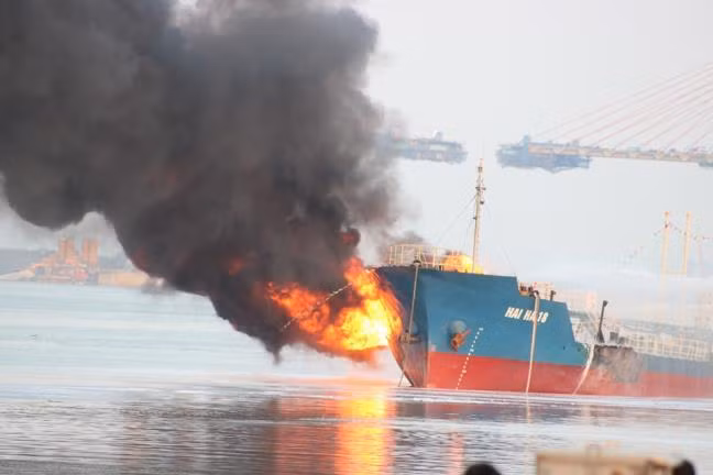Trước đó, vào khoảng 16h30 ngày 10-3, tại Cảng K99, luồng Sông Cấm thuộc phường Đông Hải, quận Hải An, TP Hải Phòng, tàu Hải Hà 18 thuộc Công ty TNHH vận tải thủy bộ Hải Hà (có trụ sở chính tại tỉnh Thái Bình) đã xảy ra sự cố cháy nổ khi đang xuất hàng.