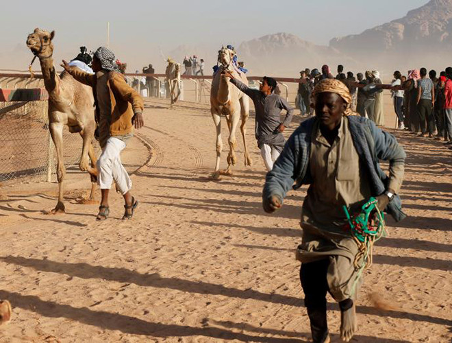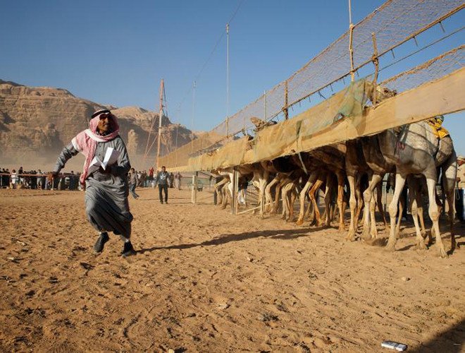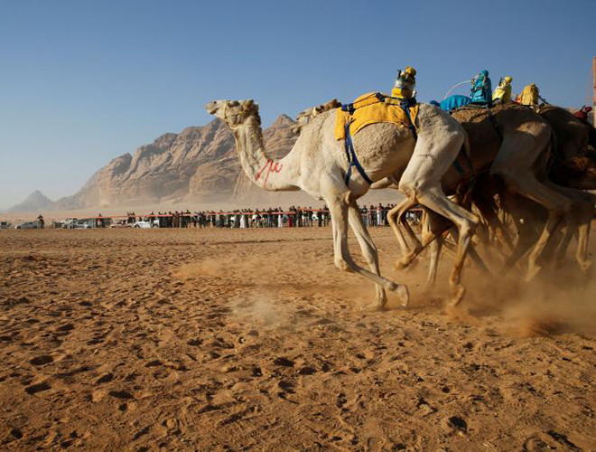ANTD.VN - Trong số những cuộc đua động vật thú vị trên thế giới như đua ngựa, đua trâu, đua voi hay đua đà điểu..., đua lạc đà ở Jordan mang tới sự phấn khích không hề thua kém. Trong cuộc đua quyết liệt vừa được tổ chức ở Wadi Rum (Jordan), các chú lạc đàn to lớn phải chạy 5km để phân định thắng thua.
