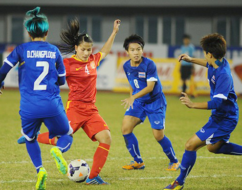 Thế nhưng Việt Nam lại bất ngờ nhận bàn thua trước. Phút 7, từ quả phạt góc bên cánh phải, đội trưởng Chương Thị Kiều nhảy lên phá bóng nhưng lại sơ ý đánh đầu phản lưới nhà, gián tiếp mở tỷ số cho Thái Lan.