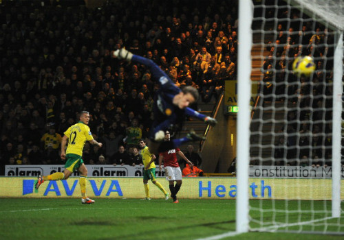 Từ một pha phản công ở phút 60, bóng nhanh chóng được chuyển đến chân của hậu vệ cánh Garrido bên phía Norwich. Băng lên rất nhanh, cầu thủ chủ nhà sau đó đã có một quả tạt chính xác và ở phía trong vòng cấm địa, Pilkington đã bật cao hơn Chris Smalling của đội khách và dứt điểm bằng cú đánh đầu đẹp mắt. Không có cơ hội cản phá dành cho Anders Lindegaard. 1-0 cho Chim Hoàng Yến!