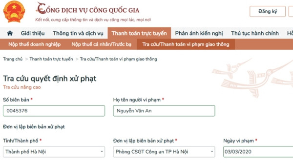 Thời gian qua, số lượng người tra cứu để thực hiện nộp phạt vi phạm hành chính trong lĩnh vực giao thông đường bộ tương đối lớn, khoảng hơn 16.000 lượt tra cứu, thực hiện. Theo Đại tá Đỗ Thanh Bình, Phó Cục trưởng Cục CSGT: Lực lượng CSGT toàn quốc đã đăng vào Cổng dịch vụ công quốc gia 13.000 trường hợp, trong đó 11.000 trường hợp có quyết định xử phạt. Tuy nhiên, tỷ lệ sử dụng nộp tiền phạt qua Cổng dịch vụ công quốc gia còn hạn chế, mới chỉ nhận được 97 trường hợp. Đây là con số vô cùng ít so với những dữ liệu được nhập lên.
