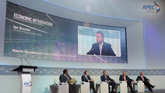 Tổng thống Putin nhấn mạnh Nga ủng hộ việc tăng cường nghị trình liên kết của Diễn đàn nhằm tiếp tục tự do hóa thương mại và đầu tư. Ông Putin cho biết, các nước có thể xem Nga là một nhà cung cấp năng lượng đáng tin cậy và tạo cầu nối với châu Âu nhằm đem lại sức sống mới cho thương mại khu vực.