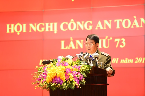 Phát biểu khai mạc Hội nghị, Bộ trưởng Tô Lâm nêu rõ: Hội nghị Công an toàn quốc lần thứ 73 diễn ra trong bối cảnh toàn Đảng, toàn dân và toàn quân ta đang nỗ lực phấn đấu triển khai thực hiện thắng lợi các mục tiêu đề ra trong Nghị quyết Đại hội đại biểu toàn quốc lần thứ XII của Đảng và Kế hoạch phát triển kinh tế - xã hội 05 năm 2016 - 2020.