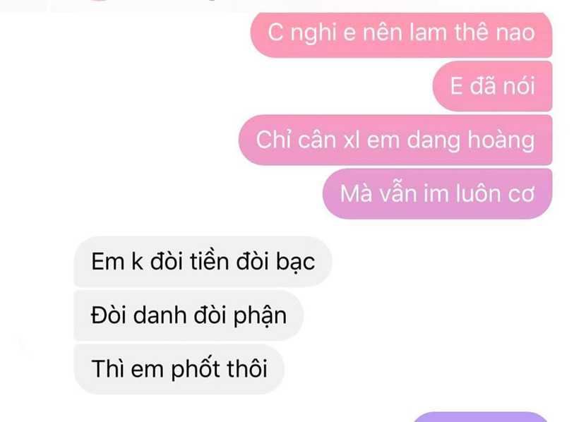 Đặc biệt, quản lý của ca sĩ H. chia sẻ, phía anh không bận tâm đến "scandal" này, cũng không muốn nói đi nói lại vì đó đều là những tin nhắn qua lại trên mạng, không có tính xác thực, ngay cả tài khoản Zalo cũng vậy bởi "100 người thì có 100 cái tài khoản Zalo".
