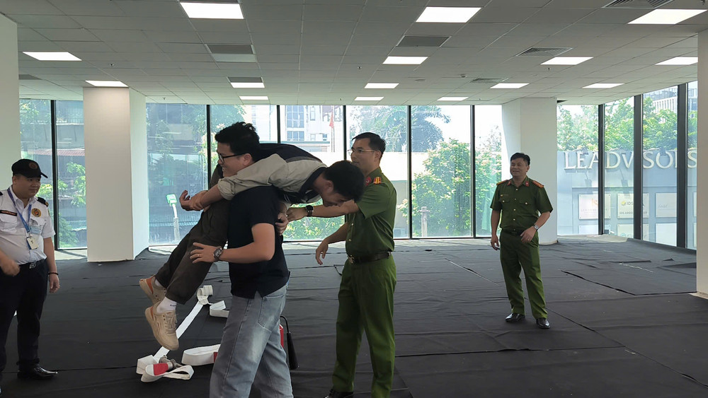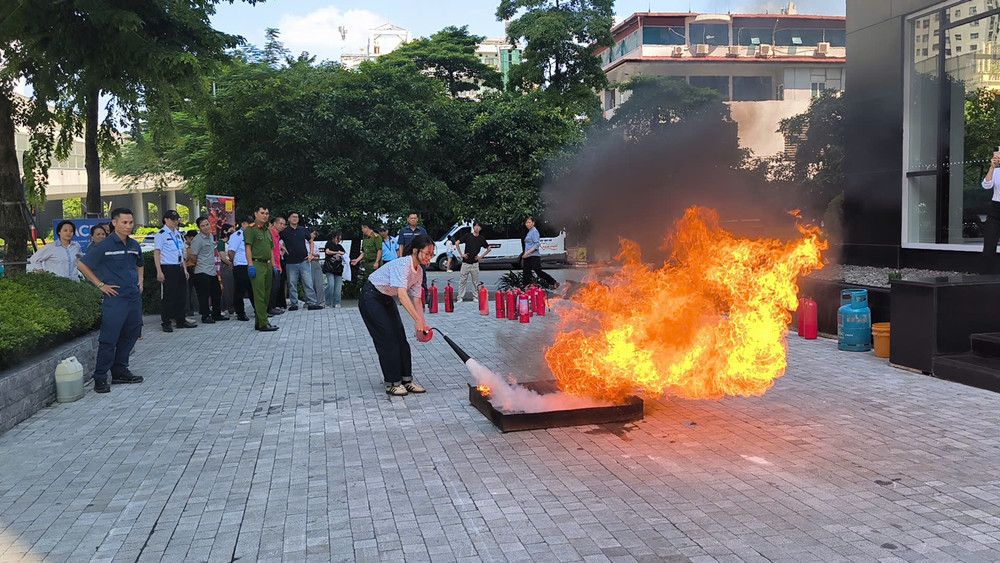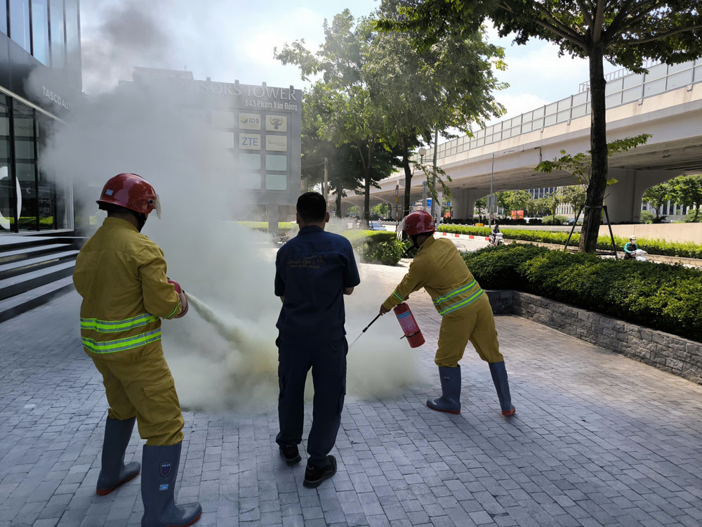Thực tập phương án, tuyên truyền kỹ năng chữa cháy, thoát nạn tại tòa nhà cao tầng