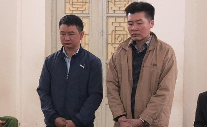Phạm Chí Thanh (bên phải) và đồng phạm tại phiên tòa sơ thẩm, hồi đầu năm 2019.