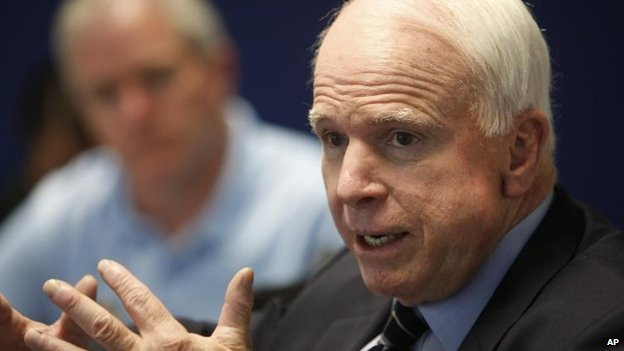 Thượng nghị sĩ John McCain cũng phát biểu trước báo giới rằng Tổng thống Putin “như một đại tá của quân đội, đang muốn xây dựng lại đế chế Nga”. Ông McCain đã kêu gọi một lệnh trừng phạt mạnh tay hơn với Nga trước khi cung cấp vũ khí cho Ukraine.