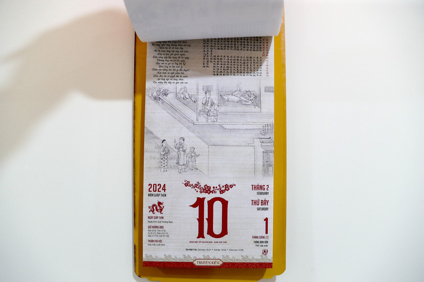 Đặc biệt, “Truyện Kiều” là một ấn phẩm lịch hoàn toàn mới của Nhà xuất bản Chính trị quốc gia Sự thật dành cho công chúng trong dịp Tết Giáp Thìn 2024. Bộ lịch giới thiệu bản Kiều có nguồn gốc tại Huế, được chép tay của Hoàng gia triều Nguyễn, từng được bày bán ở một hiệu sách cổ tại Paris, sau đó được Thư viện Anh quốc sưu tập, nằm trong bộ sưu tập cổ thư của thư viện này từ năm 1894. Bộ lịch được thực hiện công phu với phần chữ Nôm và đặc biệt là tranh minh họa tương ứng với nội dung được vẽ vô cùng công phu, chi tiết, tạo nên một ấn phẩm giàu tính nghệ thuật, rất có giá trị với văn hóa Việt. Lần đầu tiên, công chúng sẽ được sử dụng, suy ngẫm và thưởng thức trọn vẹn "Truyện Kiều" theo một phong cách riêng, độc đáo.