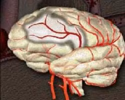 - Chảy máu não (hay xuất huyết não): Gây ra do một động mạch trong hộp sọ bị vỡ, máu tràn ra khỏi lòng mạch và chèn ép vào các vùng não xung quanh. Do bị chèn ép, các vùng não hoạt động không chính xác, dẫn tới các biểu hiện lâm sàng của bệnh nhân. Tuy nhiên, nếu như giải thoát được chèn ép thì vùng não đó vẫn có khả năng hoạt động trở lại. Do vậy, nếu kiểm soát được tình trạng chảy máu não thì bệnh nhân sẽ hồi phục nhanh hơn.