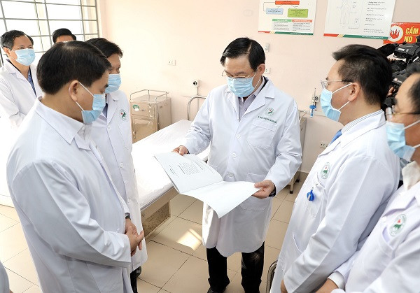 Bí thư Thành ủy cùng Chủ tịch UBND TP Hà Nội kiểm tra công tác phòng chống dịch Covid-19 ở BV Đa khoa Đức Giang