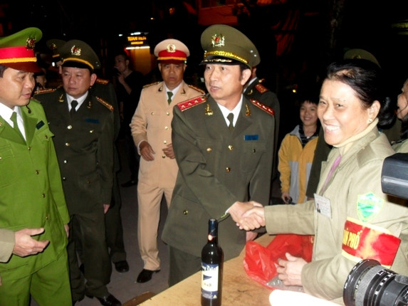 Nơi tiếp theo đồng chí Đặng Văn Hiếu tới thăm là chốt 141 - CATP ở ngã tư Tôn Đức Thắng - Cát Linh. Đồng chí Thứ trưởng tin tưởng CATP Hà Nội sẽ đảm bảo tuyệt đối an toàn cho Thủ đô trong dịp Tết Nguyên đán Quý Tỵ và nhắc nhở cán bộ chiến sỹ làm nhiệm vụ phải chú ý giữ gìn sức khỏe, trang bị cho mình đầy đủ những công cụ hỗ trợ cần thiết để thực hiện nhiệm vụ được tốt hơn.