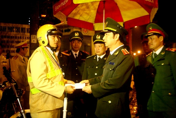 Rời chốt giao thông Cửa Nam - Điện Biên, địa chỉ thứ hai đồng chí Thứ trưởng thường trực Bộ Công an đến kiểm tra là chốt giao thông Điện Biên Phủ - Hoàng Diệu. Tại đây, đồng chí Đặng Văn Hiếu nhắc nhở cán bộ chiến sỹ đang làm nhiệm vụ phải tập trung hoàn thành tốt nhiệm vụ giữ gìn TTATGT trong đêm giao thừa và cả dịp Tết Nguyên đán Quý Tỵ, đặc biệt là phòng chống đua xe và cổ vũ đua xe trái phép, gây rối trật tự công cộng. Trung tá Lưu Minh Tuyên, cán bộ Phòng CSGT - CATP Hà Nội đã hứa với đồng chí Thứ trưởng thường trực Bộ Công an đơn vị luôn thực hiện tốt chỉ đạo của Giám đốc CATP Hà Nội, kiên quyết xử lý nghiêm những vi phạm vè TTATGT và phòng chống đua xe trái phép.