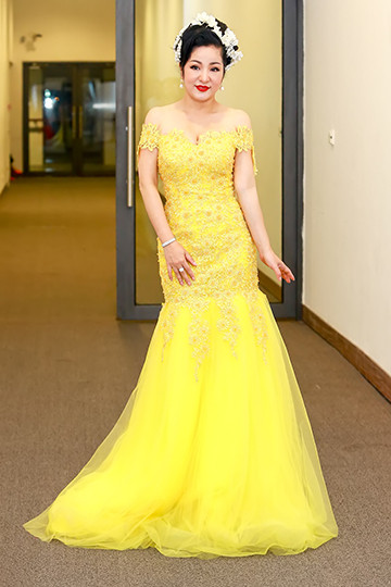 Thúy Nga lộng lẫy trong bộ váy vàng bó sát