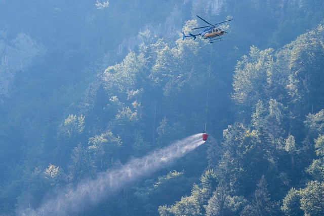 Lực lượng cứu hộ đã phải huy động trực thăng dập lửa để những nhân viên dưới mặt đất có thể tiếp cận hiện trường.