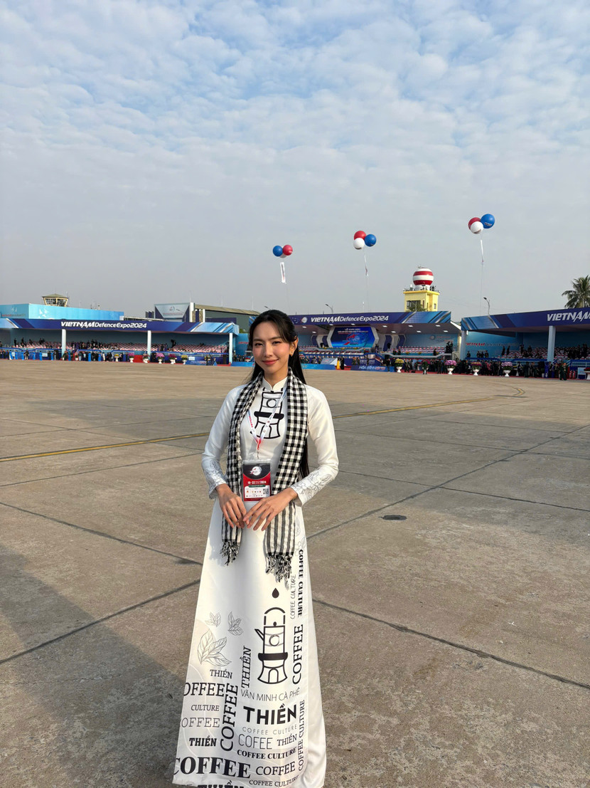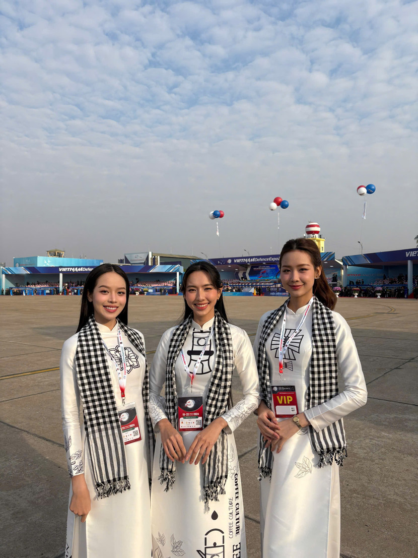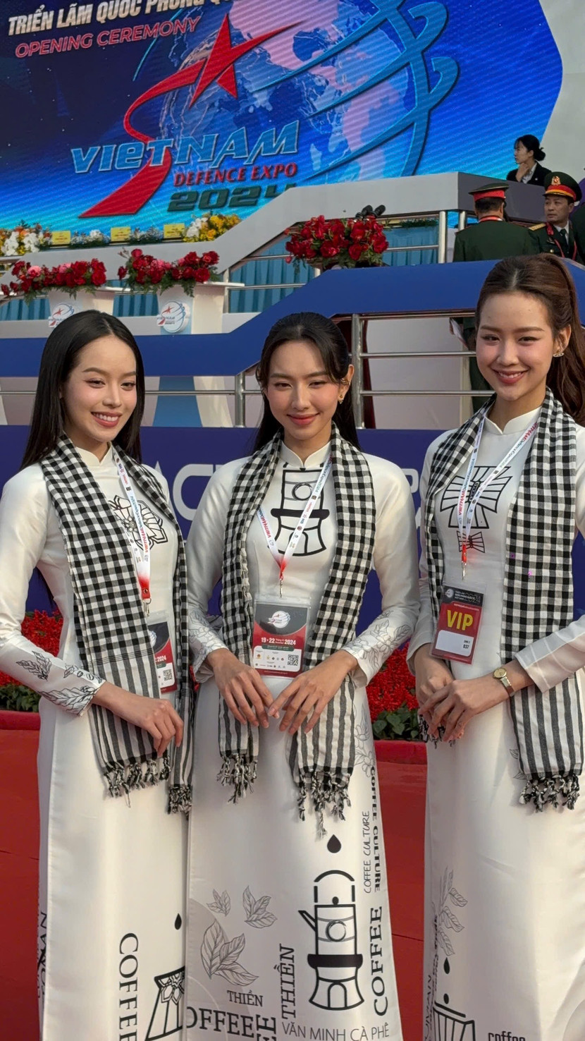 Xuất hiện tại sự kiện "Triển lãm Quốc phòng quốc tế Việt Nam 2024", Thùy Tiên chọn mặc trang phục áo dài truyền thống màu trắng, biểu tượng cho vẻ đẹp của phụ nữ Việt Nam. Tham gia sự kiện cùng Thuỷ Tiên còn có Hoa hậu Thanh Thuỷ và Hoa hậu Bảo Ngọc. Sự hiện diện của cả ba thu hút sự quan tâm của đông đảo mọi người.