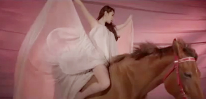 Trong một số cảnh quay, cô ca sĩ này còn mặc bộ đồ ngủ màu tím "siêu sexy", tạo dáng cùng chiếc đu quay kiểu cách. Đặc biệt trong một số cảnh quay khác, Thủy Tiên còn sử dụng một chú ngựa làm điểm nhấn cho MV của mình.
