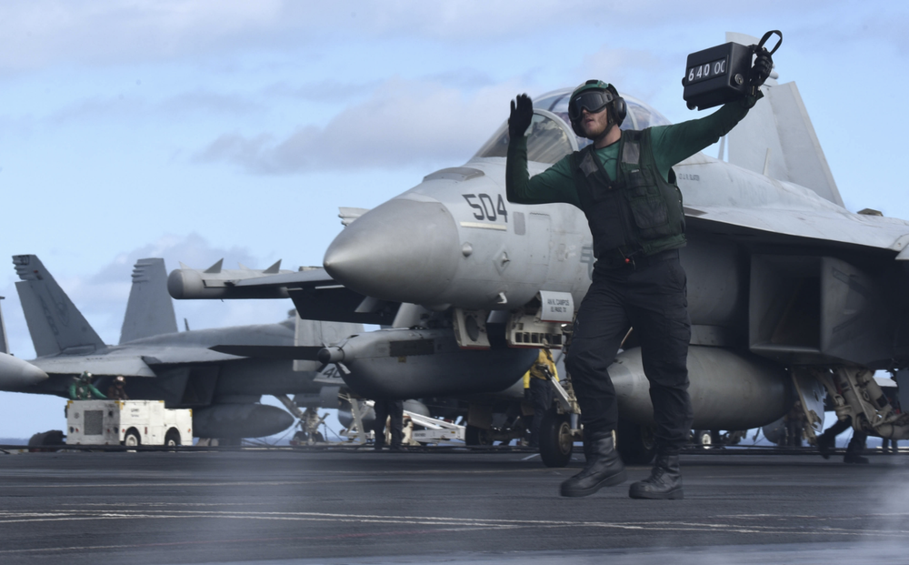 ANTD.VN - Tiêm kích EA-18G Growler mang theo tổ hợp gây nhiễu và tên lửa chống radar, đóng vai trò bịt mắt đối phương, dọn đường cho các đòn không kích vào hệ thống phòng không Iran.
