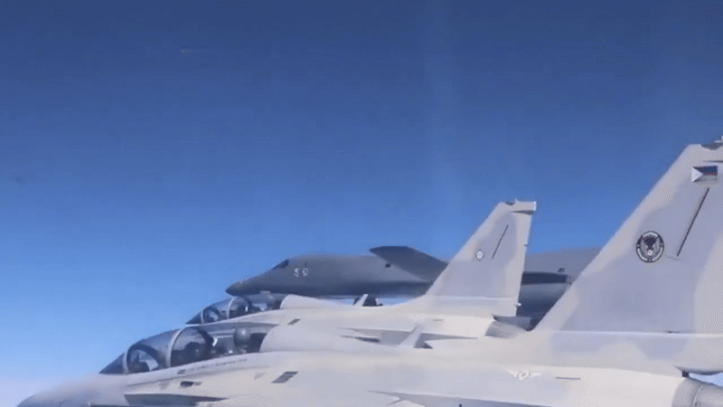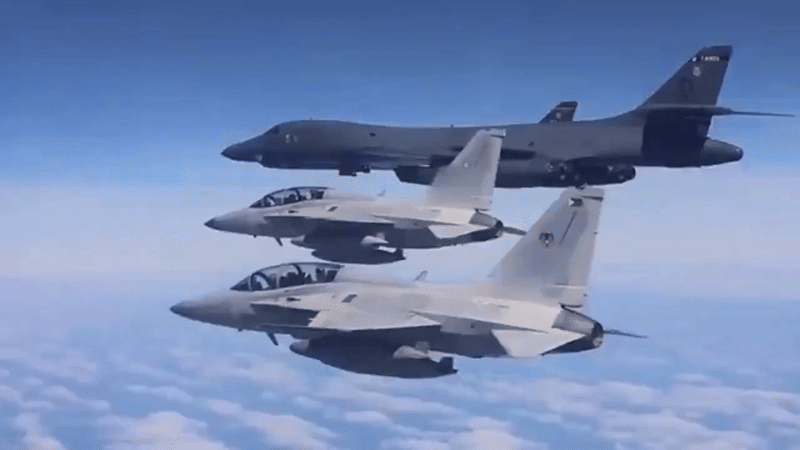 Tiêm kích FA-50 Philippines bay cùng máy bay ném bom B-1B Mỹ trên Biển Đông