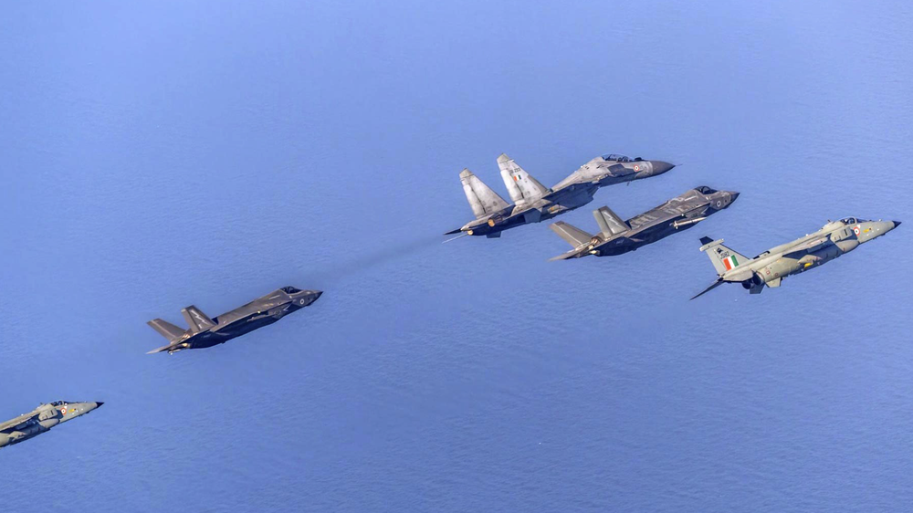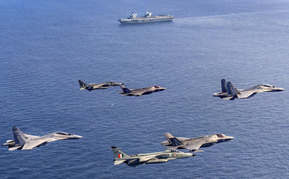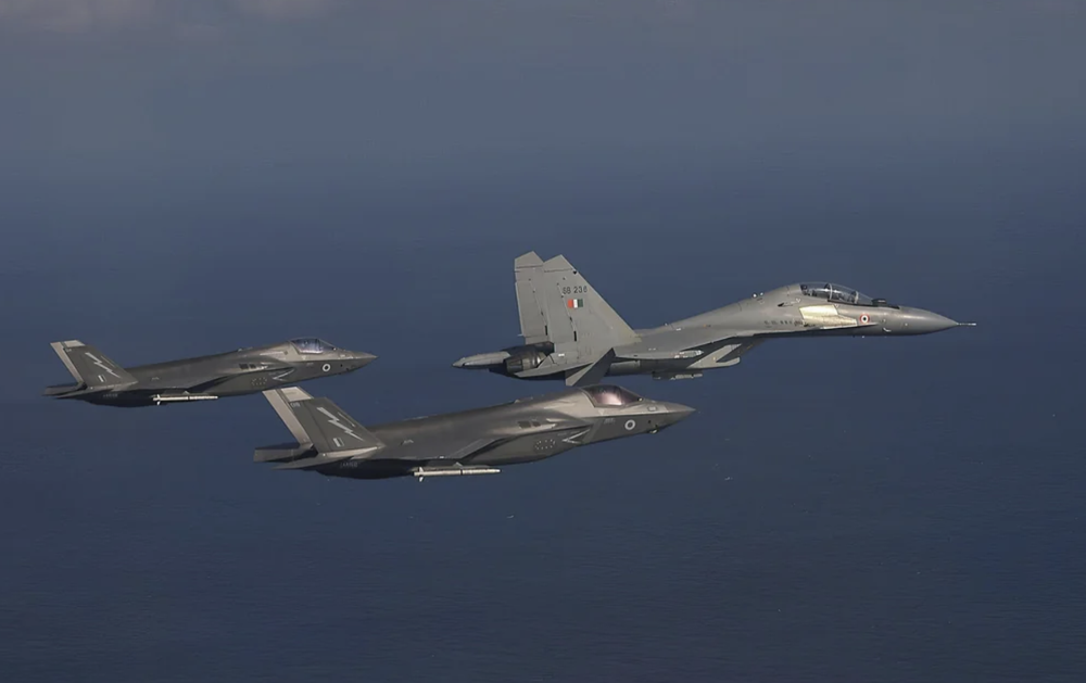 ANTD.VN - Biên đội chiến đấu cơ Su-30MKI, Jaguar mô phỏng tập kích tàu sân bay và không chiến tầm gần với biên đội tiêm kích tàng hình F-35B Anh trong cuộc diễn tập ngoài khơi Ấn Độ