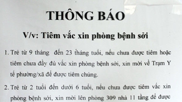 Hiện tại, kế hoạch tiêm vaccine sởi định kỳ và chiến dịch tiêm vét vaccine sởi vẫn đang được các địa phương trên cả nước tích cực triển khai. Thống kê của Bộ Y tế tính đến thời điểm này cho thấy, kết quả tiêm vaccine sởi và tiêm vét vaccine sởi trên toàn quốc đạt 76,2 %. Trong đó, 47 tỉnh/ thành phố có tỷ lệ tiêm vét vaccine sởi đạt tỷ lệ cao trên 70%, song vẫn còn 4 tỉnh có tỷ lệ tiêm vét vaccine sởi thấp dưới 50%, gồm: An Giang, Tiền Giang, Bạc Liêu, Long An. Tại Hà Nội, tỷ lệ tiêm vaccine sởi trên toàn địa bàn thành phố hiện đạt 97,4%, trong đó có 3 huyện Mê Linh, Phú Xuyên, Thạch Thất đạt tỷ lệ 100%. Ngoài ra, Hà Nội còn thực hiện thêm chiến dịch tiêm bổ sung vaccine sởi cho những trẻ trên 23 tháng tuổi với 30 điểm tiêm miễn phí trên toàn thành phố. Tính riêng điểm tiêm miễn phí tại Trung tâm Y tế dự phòng Hà Nội (70 Nguyễn Chí Thanh), từ ngày 20-4 đến nay đã có hơn 500 trẻ trên 23 tháng tuổi được tiêm bổ sung vaccine này.