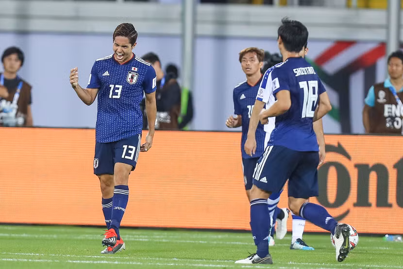 Muto (số 13) từng góp bàn thắng quan trọng giúp Nhật Bản thắng Uzbekistan