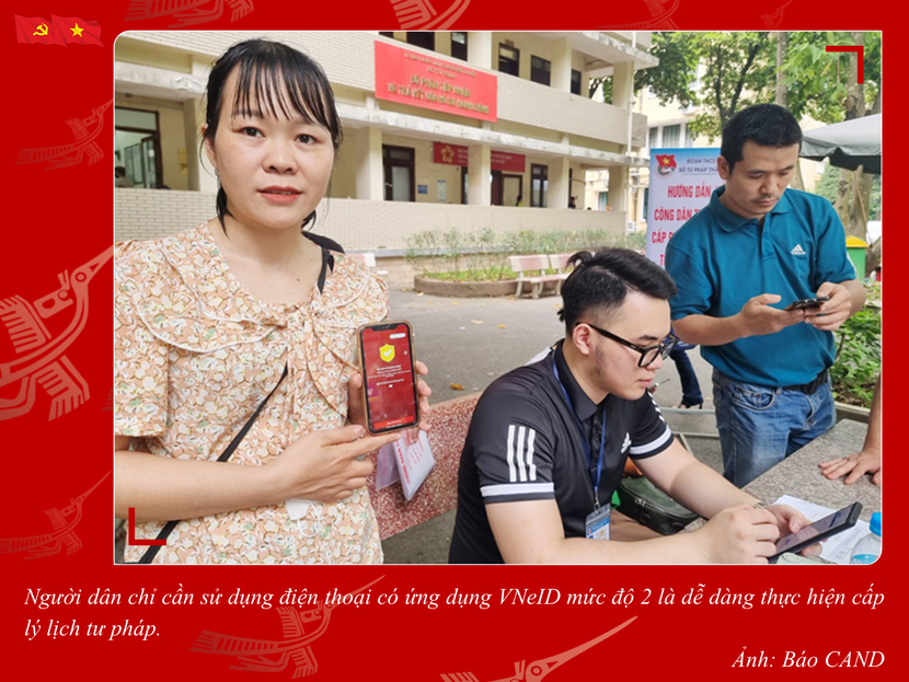 Thủ tục cấp Phiếu lý lịch tư pháp (LLTP) qua ứng dụng VNeID là một cải cách nhận được sự hoan nghênh đặc biệt. Trước đây, để xin Phiếu LLTP (giấy xác nhận tình trạng án tích), người dân phải đến Sở Tư pháp xếp hàng, nộp hồ sơ giấy và chờ đợi nhiều ngày, thậm chí cả tuần lễ mới nhận được kết quả. Nay với việc Bộ Công an tiếp quản dịch vụ này, quy trình đã được số hóa gần như hoàn toàn. Từ tháng 6/2024, Hà Nội thí điểm cho phép công dân nộp hồ sơ cấp Phiếu LLTP trực tuyến, miễn lệ phí trên ứng dụng định danh điện tử VNeID. Chính sách miễn phí (200.000đ/lượt) kéo dài đến hết năm 2024 nhằm khuyến khích người dân sử dụng phương thức mới. Thông tin này đã khiến nhiều người dân “nức lòng”. Ông Nguyễn Văn Đạo (xã Yên Thường, huyện Gia Lâm) chia sẻ: con gái ông từng mất nguyên một ngày trời xếp hàng lấy số thứ tự (đến số 405 vẫn chưa giải quyết xong) và phải chờ sang tuần kế tiếp mới nhận được LLTP. “Vì thế, khi Hà Nội triển khai cấp Phiếu LLTP trên VNeID như thế này, tôi thấy quá tuyệt vời vì giảm bao nhiêu thời gian, công sức cho người dân” ông Đạo phấn khởi nói. Đến tháng 7/2025, dịch vụ này đã được triển khai trên phạm vi cả nước và thực sự phát huy hiệu quả. Chị Nguyễn Thị Thảo (phường Bạch Mai, quận Hai Bà Trưng) phản ánh trải nghiệm của mình tại điểm một cửa Cục Hồ sơ nghiệp vụ (Bộ Công an) ở Hà Nội: “Tôi đến xin cấp phiếu LLTP thì được các cán bộ hướng dẫn làm hoàn toàn qua ứng dụng VNeID, không phải nộp bất kỳ giấy tờ nào. Thời gian nộp hồ sơ chưa đầy 10 phút. Tôi sẽ về tuyên truyền cho người thân, bạn bè biết tiện ích này để khỏi phải đi lại, chuẩn bị nhiều giấy tờ như trước”. Không chỉ nhanh chóng, việc làm LLTP online còn giúp người dân chủ động theo dõi tiến độ và nhận kết quả tại nhà. Thống kê cho thấy thời gian chờ kết quả hiện rút ngắn chỉ còn 3 ngày với hồ sơ không án tích (trước đây có thể mất hàng tuần). Đặc biệt, cao điểm có ngày hơn 8.000 trường hợp được trả kết quả LLTP trên toàn quốc, con số ấn tượng cho thấy khối lượng người dân đã chuyển sang sử dụng hình thức mới và hài lòng với tốc độ giải quyết. Theo Tổ Công tác Đề án 06 của Chính phủ, khi toàn dân áp dụng cấp LLTP qua VNeID, Nhà nước có thể tiết kiệm gần 700 tỷ đồng mỗi năm do cắt giảm được thời gian đi lại, nhân lực phục vụ và chi phí giấy tờ. Như vậy, rõ ràng cả người dân lẫn bộ máy nhà nước đều hưởng lợi từ cải cách mang tính đột phá này.