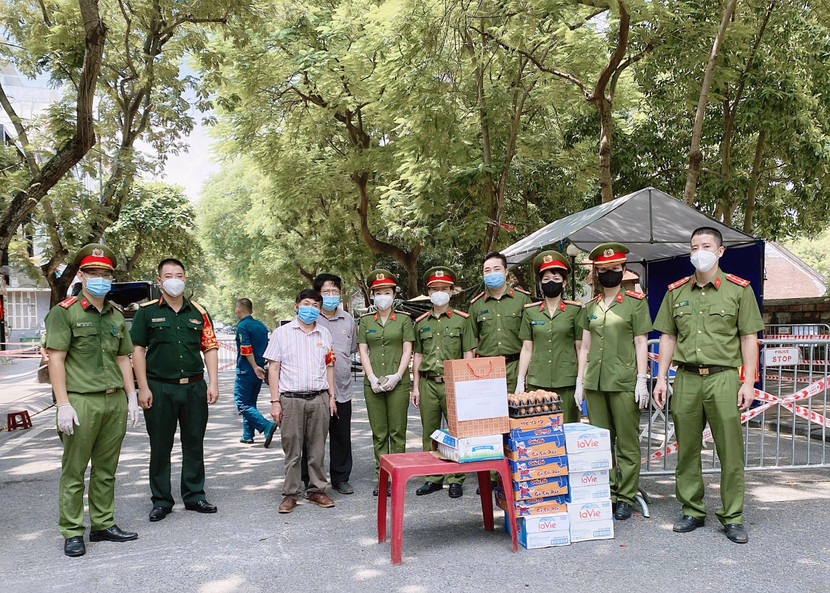 Hiểu và chia sẻ với những người đồng đội đang ngày đêm bám chốt ngăn dịch, điều kiện làm việc nguy hiểm, dưới thời tiết khắc nghiệt nắng mưa thất thường, thiếu thốn đủ thứ, CBCS CAQ Đống Đa đã cùng nhau chung tay, góp sức dành tặng những món quà là 64 thùng mì tôm, 422 hộp khẩu trang, 51 thùng nước, 1190 quả trứng, 20 thùng sữa và 13 chiếc ô gửi đến đồng đội.