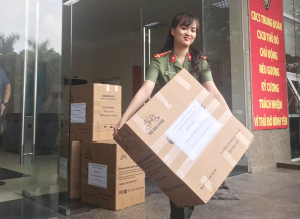 ANTD.VN - Hưởng ứng lời kêu gọi của Chính phủ, Mặt trận Tổ quốc Việt Nam về việc chung tay đẩy lùi dịch Covid-19, được sự đồng ý của Đảng ủy, chỉ huy Phòng An ninh kinh tế CATP Hà Nội, Đoàn thanh niên, Hội phụ nữ đơn vị đã tổ chức chương trình trao tặng, khẩu trang cho các đơn vị, địa phương ở tuyến đầu chống dịch.