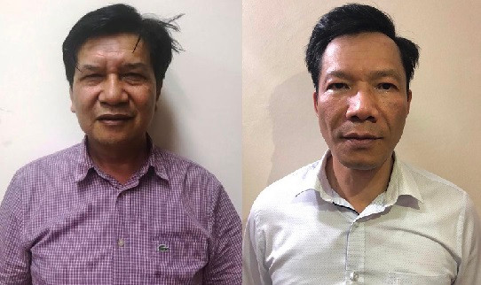 Các bị can Trần Ngọc Hà (trái) và Vũ Quang Tâm