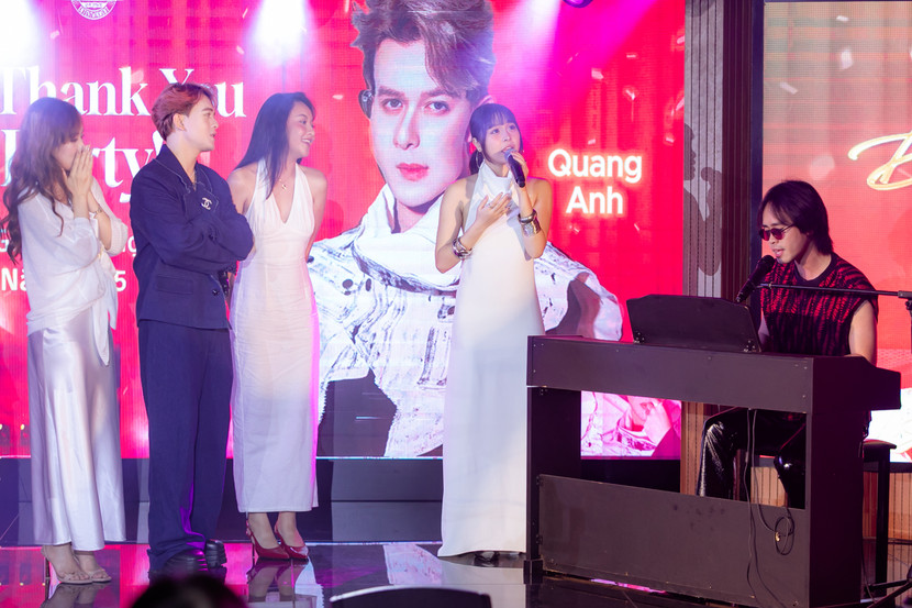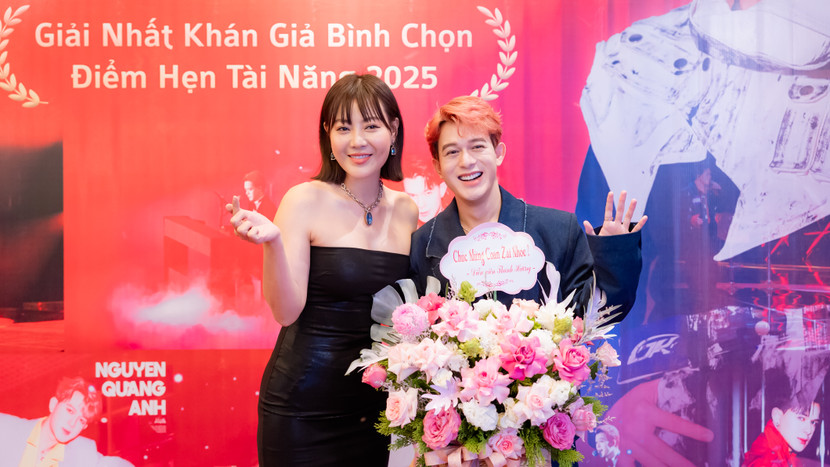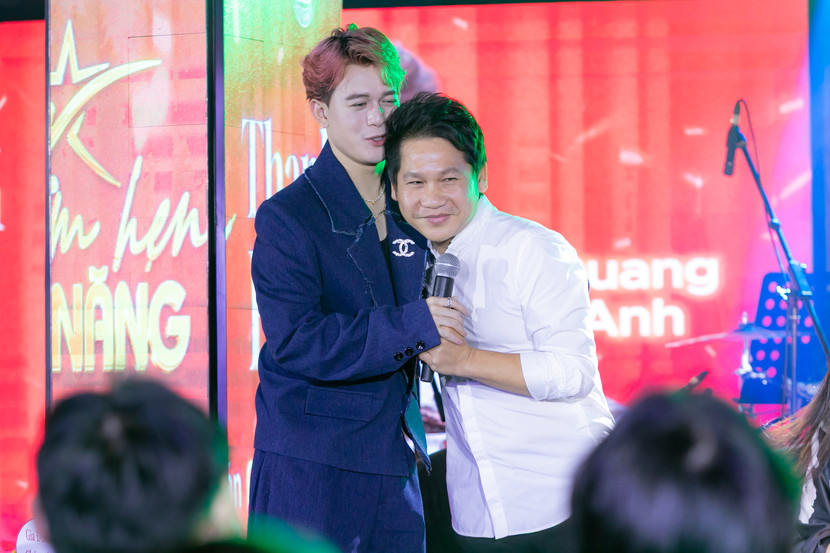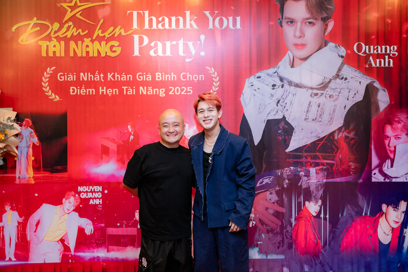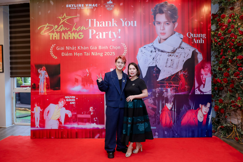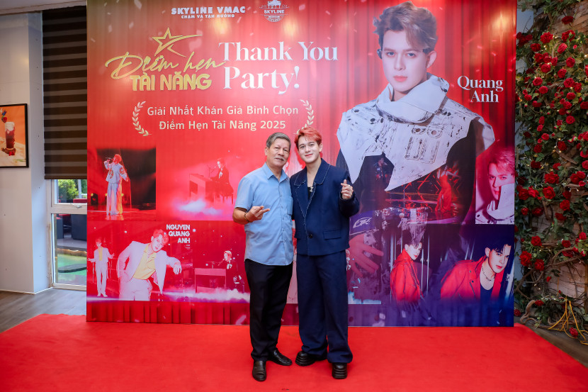 Tại sự kiện hội ngộ với Top 12 thí sinh của sân chơi "Điểm hẹn tài năng 2025" diễn ra tại Hà Nội, Quang Anh cùng các thí sinh đã ngẫu hứng tái hiện lại trên sân khấu ca khúc chủ đề “Hướng tới ngôi sao” - một sáng tác của nhạc sĩ Hồ Hoài Anh. Trong khi con trai và các bạn vui vẻ ca hát thì bố của nam nghệ sĩ lặng lẽ bước lên cánh gà sân khấu trổ tài chơi trống. Mặc dù dùi trống bị mất, ông dùng...đôi đũa để thay và có màn “góp vui” rất thú vị.