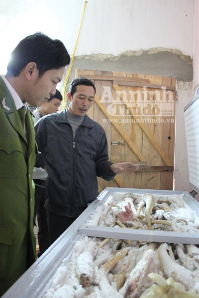 Tại phòng số 5, tổ công tác phát hiện 600kg đuôi bò, phín bò, gân bò chứa trong hai ngăn tủ đá. Số thực phẩm này không rõ nguồn gốc xuất xứ, không có giấy kiểm dịch vệ sinh an toàn thực phẩm theo quy định.
