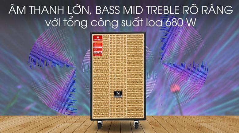- Công suất 680W, âm thanh trong trẻo, vang xa với kết cấu âm thanh 3 đường tiếng gồm: 1 loa Bass 4 tấc , 1 loa Mid và 1 loa Treble. Mang đến chất lượng âm thanh hoàn hảo.