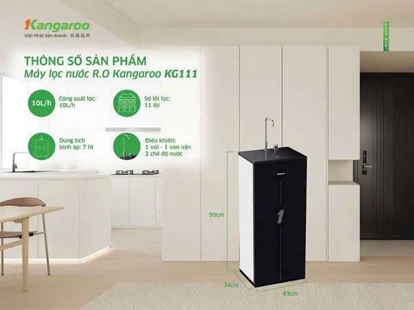 Máy lọc nước Kangaroo là sản phẩm được sản xuất tại Việt Nam theo dây chuyền công nghệ hiện đại, dưới sự giám định chặt chẽ của các chuyên gia. Sản phẩm sở hữu thiết kế tối giản nhưng không kém phần sang trọng, tinh tế. Thương hiệu Kangaroo cung cấp nhiều mẫu mã máy lọc nước như: Máy lọc nước có nóng lạnh, máy lọc nước Hydrogen, máy lọc nước nhiễm mặn lợ,...