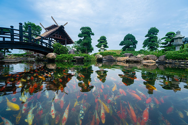 Rời cabin cáp treo, bạn đã đặt chân đến với một góc “xứ sở Phù Tang” trên đỉnh Ba Đèo của Hạ Long. Khu vườn Nhật được thiết kế cầu kỳ, tinh tế với tiểu cảnh bonsai gồm những cây tùng quý hiếm, hồ cá Koi sống động, Cầu Koi đỏ thắm giữa nền xanh mướt cỏ cây, những tạo hình ấn tượng tạc từ đá… tất cả giống như một “Nhật Bản” thu nhỏ, hiển hiện ngay trước mắt ta, thật gần.